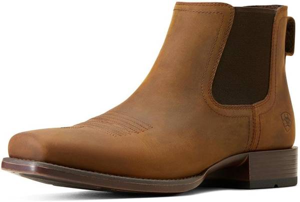 NEW SZ 11.5 Casual Boots Ariat Men Booker Ultra Embroidered Square Toe Chelsea Ankle Brown
