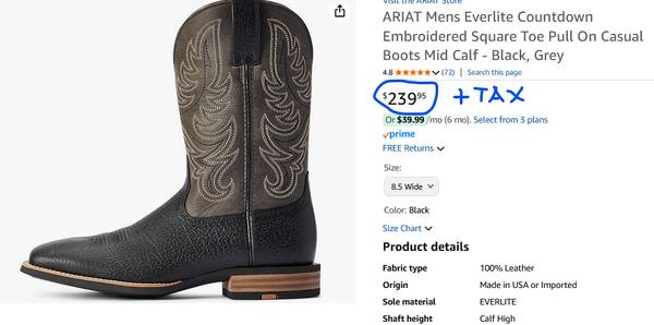 NEW SZ 7.5 ARIAT Men Everlite Western Cowboy Boots Countdown Embroidered Square Toe Ridding Boot Pull On Casual Boots Mid Calf Black Grey