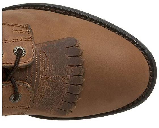 Lace-up boot featuring double-kiltie flaps and logo embossed on outer shaft