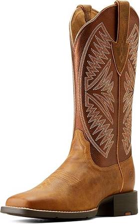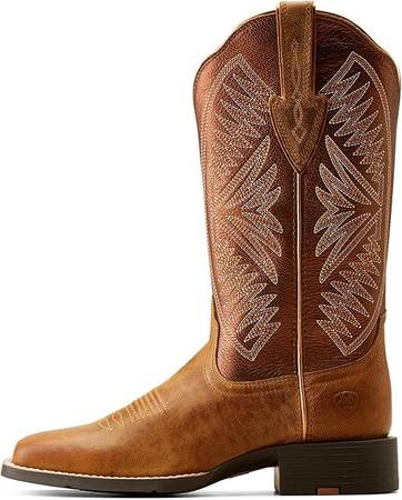 NEW SZ 9.5 C Wide ARIAT Women Western Cowboy Boots Round Up Ruidoso Embroidery Metallic Square Toe Casual Boots Mid Calf Low Heel 1-2" - Brown