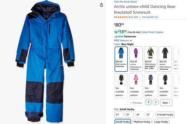NEW XL Husky Arctix Boy Girl Kid Child Insulated Winter Snow Snowsuit Bib Overalls Dancing Bear With Hood