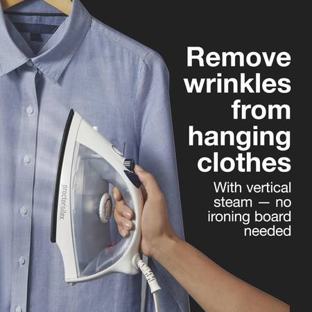 QUICKLY REMOVE WRINKLES FROM HANGING CLOTHES: This steam iron doubles as a garment steamer for clothes. Freshen clothes and loosens wrinkles right on the hanger with the vertical steam function
