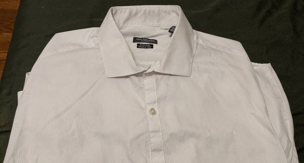 $25 OBO Men's Van Heusen Extra Slim Non-Iron Wrinkle Resistant White Dress Shirt! Size 16, 32/33. Cash only, no e-transfer, trades or lowballing. Excellent Condition Men tuxedo formal suit slacks...