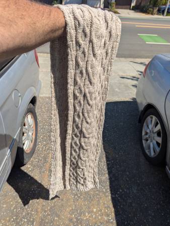 Was a gift, never used it, new condition. Soft, warm, high quality scary. $40 cash about 9 " wide x 80 long men mens woman woman's winter cloth cloths clothing ski skiing gear neck cabin hike hiking...