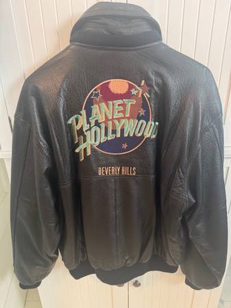 This is a rare vintage MENS LARGE Reversible Planet Hollywood leather jacket from the now closed Beverly Hills Restaurant location.