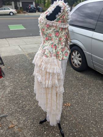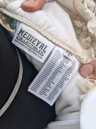 Renaissance dress is marked size small, will fit a woman approximately size 4 or 6. Made by medieval collectibles. Size is adjustable with the lace up back, there is boning in the corset section. Used once for a party. $80 cash.