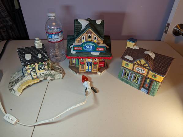 Miniature houses for model landscapes, window decoration, electric trains, Christmas shelf decorations. Nicely painted, good details. One removeable light included. More C7 Christmas light sockets...