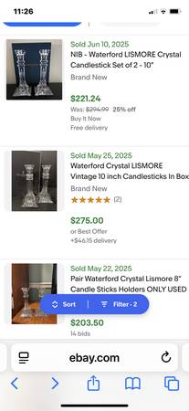 BEAUTIFUL PERFECT PAIR OF WATERFORD CRYSTAL LISMORE