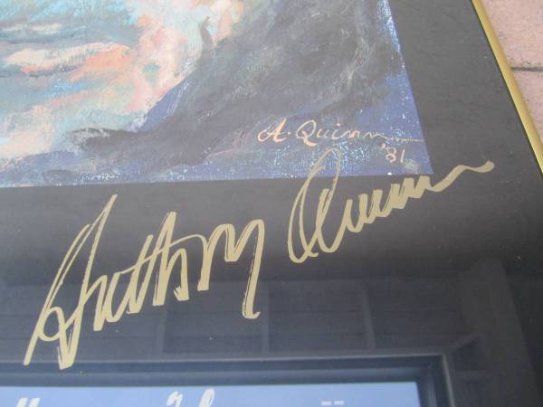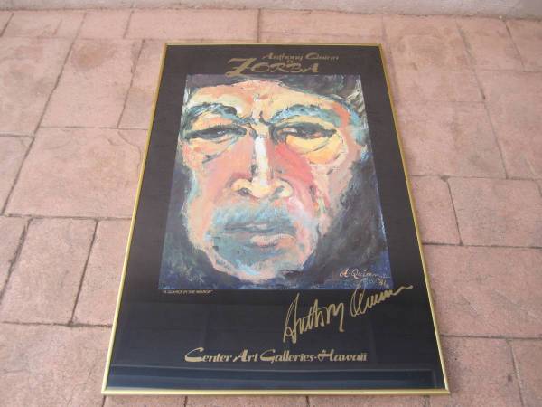 I am selling a ANTHONY QUINN "A GLANCE IN THE MIRROR" SIGNED FRAMED POSTER PRINT. This print is double signed by Anthony Quinn in on the bottom right and is from the Center Art Gallaries Hawaii 1981. It measures 35" Tall x 23" wide. The poster print comes with the original 1980's $77.00 framing invoice. I am selling this print for $150.00