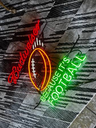 Budweiser football neon sign. In need of a good home. Perfect for any man cave. Works perfectly, only selling it because I’m moving.. $120 or best offer. Call John…