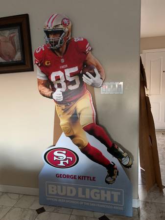 I am selling a GEORGE KITTLE SAN FRANCISCO 49ERS LIFE-SIZE CARDBOARD CUTOUT. This George Kittle display cutout is is less than 1 year old and is in very nice condition. It measures 6" x 3". It stands perfectly with the integrated backing/stand. I am selling it for $69.00