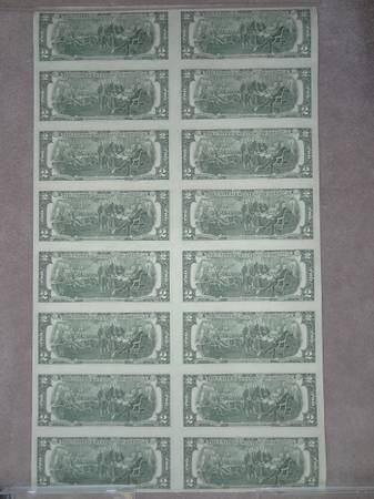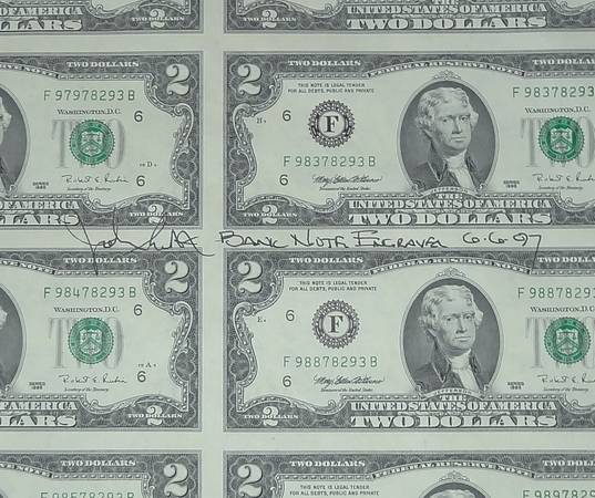 1995 U.S. $2 Uncut Sheet of 16, Signed by Bank Note Engraver on 6/6/1997 This is a rare collection. F series If interested, email or text/call Cash only, pickup in Milpitas