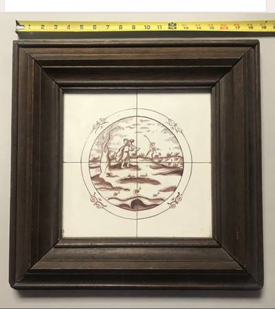 Vintage Ceramic Tiles From Prague Czechoslovak - Framed with Inscription on Back.