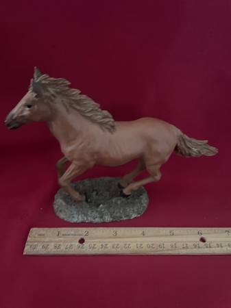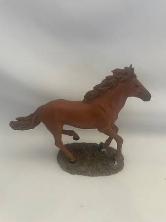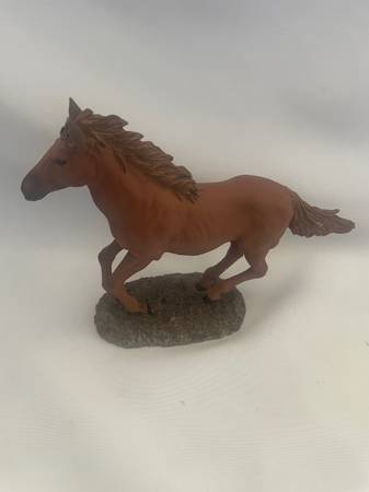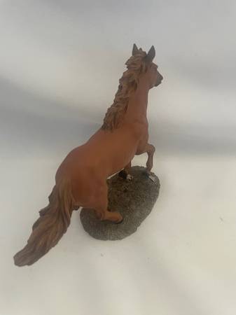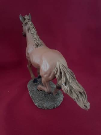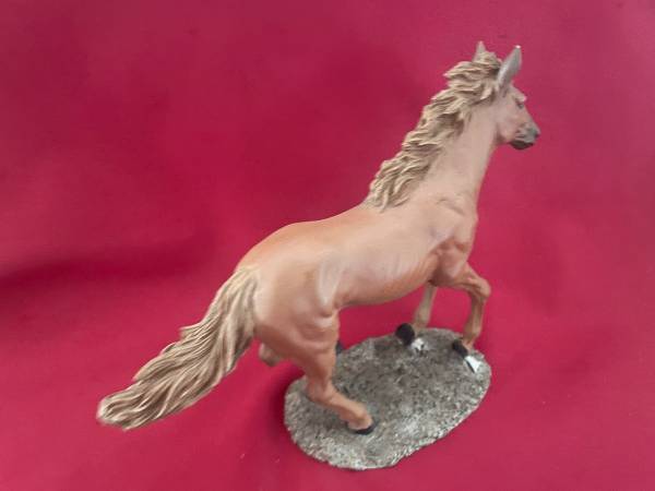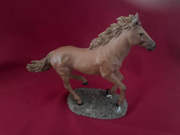 "New Old Stock. Past Display Models" without original box. When looking at this horse I see that it is attached on the back leg. The two front legs look to be off the foundation. I do not see how the front legs could have ever been lined up to be attached even though it looks like they were broken off. This is how I received this horse. It does not show when it is shown with the horse head turned to the left. Situate the head to be on the right and you can see the bottom foundation is not attached.