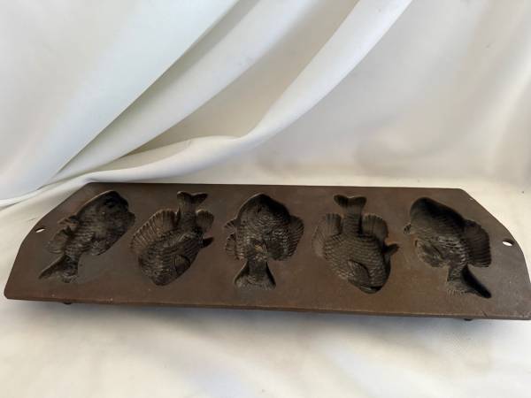 Cast Iron Muffin Pan Fish Shaped Cornbread Mold Lodge USA
