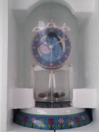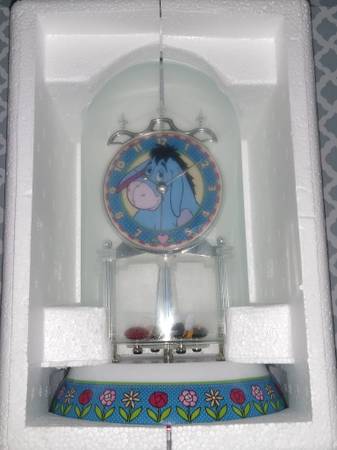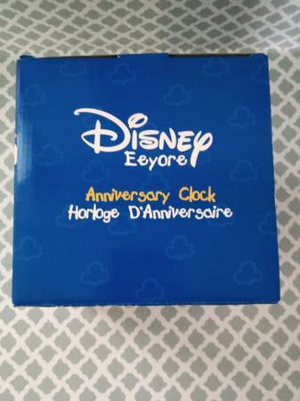 DISNEY EEYORE GLASS DOME ANNIVERSARY CLOCK MEASURES 10X6" NEW IN BOX ONLY TAKEN OUT TO TAKE THESE PICTURES. $25.00
