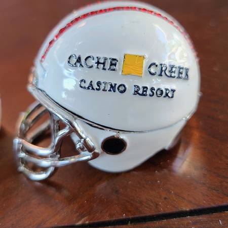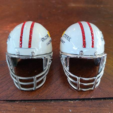 Up for sale is a cool pair of miniature Cache Creek football jewelry helmets. $10 for one or both for $15. Please no calls after 9pm. Thanks for looking