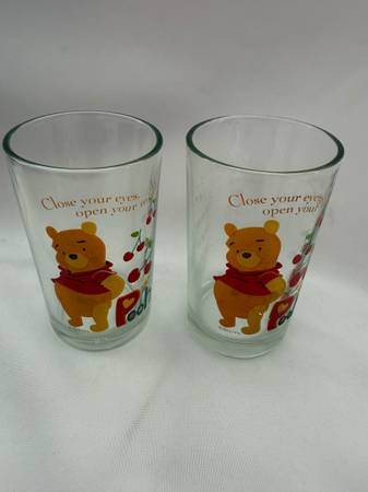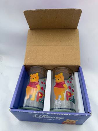(2 Juice Glasses) Disney Winnie the Pooh Glass Set - With Original Box .