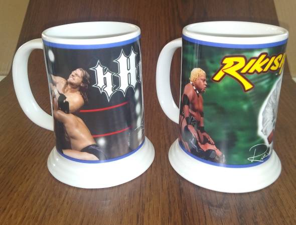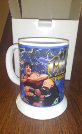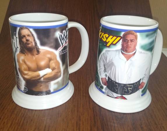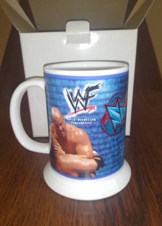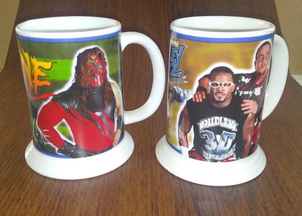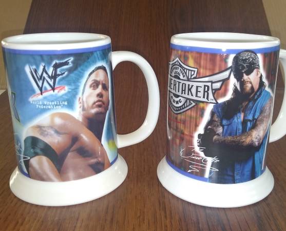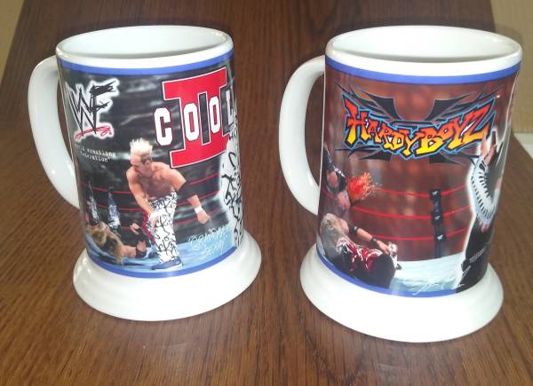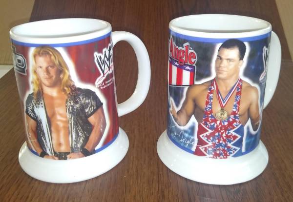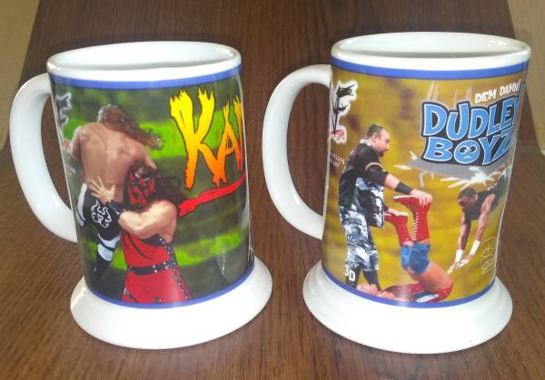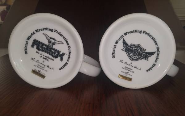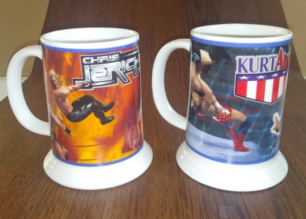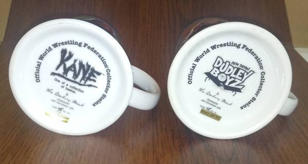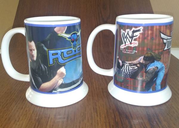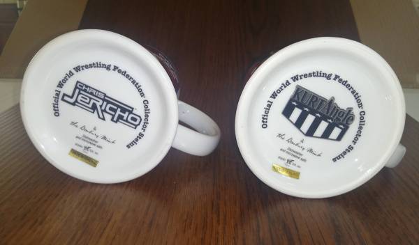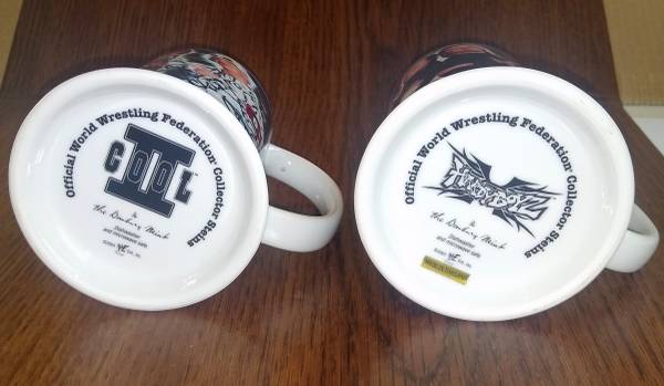 COMPLETE SET OF 12 WWF 2001 VINTAGE DANBURY MINT WRESTLING STEINS; THE ROCK STONE COLD STEVE AUSTIN TRIPLE H CHYNA KANE THE UNDERTAKER CHRIS JERICHO KURT ANGLE THE HARDY BOYZ II COOL DUDLEY BOYZ...