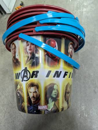 Brand new, never used Marvel buckets. LOCAL PICKUP ONLY