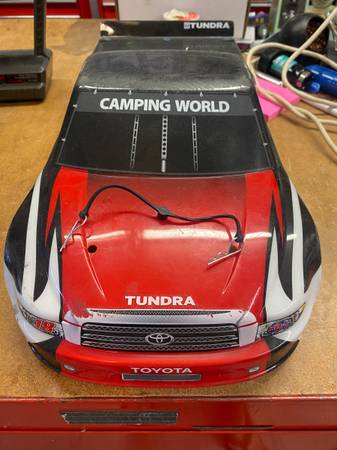 Used Traxxas Kyle Busch 1/16 4WD Toyota Tundra Race Truck Camping World Rare. Has a Brushless system and some upgrades. Ready to run just add you battery and charger. If interested send me your phone number and I will get back to you. Thanks for looking