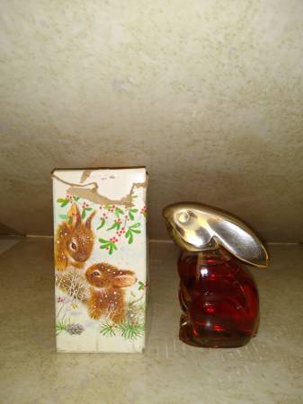 VINTAGE AVON SNOW BUNNY BOTTLE WITH CHARISMA COLOGNE 3OZ ASKING $20.00 THE BOX IS TORN ON ONE SIDE.