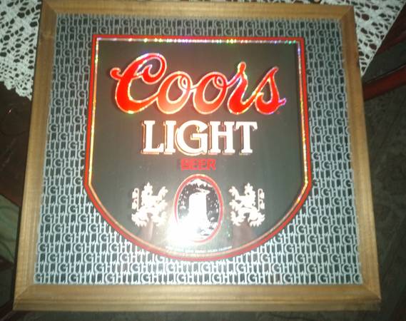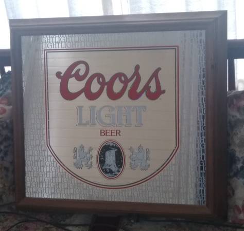 VINTAGE 1980'S COORS LIGHT BEER LIGHTED MIRROR SIGN, MEASURES 20 1/2" X 22 1/4" X 3". WORKS, ASKING $270.00