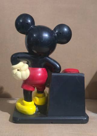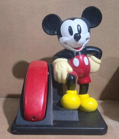 "The Mickey Mouse Telephone was manufactured in China for the A.T.& T. in the 1990s. Touch-Tone or pulse dialing switch, mute key and last number dial. Ringer has off/hi/low settings and a standard ring. A beautiful phone to adorn children's bedroom."