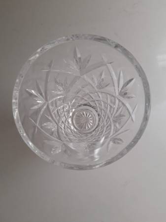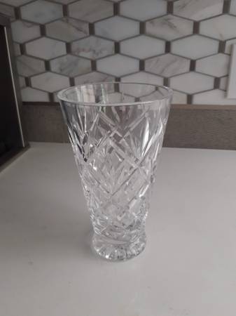 Prestigious Waterford crystal. Lightly flared top, solid round bottom. Waterford acid stamp located towards bottom of vase. No chips nor scratches. Crafted in Ireland 8" tall by 4.5" wide. base...