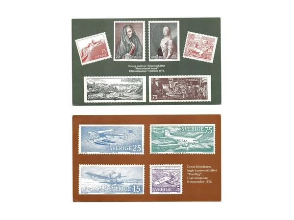 2 Vintage Postcards from Sweden Commemorating Postage Stamps from. Unused Color Post Cards. Local pickup and cash or Venmo only.