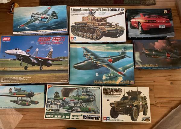#1 Hasegawa.Kawanishi H8K2(Emily)Type 2 Flying Boat.WWII Japanese Navy. SEALED.1:72. $85 (big box) #2 ACADEMY 1:48 RUSSIAN KNIGHTS SUKHOI AIR KIT ON 27 FLANKER B ART 2167 $65 (big box) #3 Nichimo...
