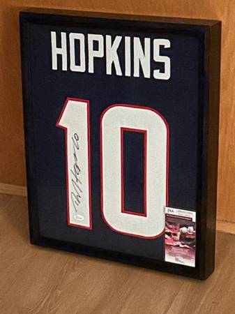 DeAndre Hopkins is a well-known player in the NFL, having played for the Houston Texans, Clemson Tigers, Cincinnati Cardinals, Tennessee Titans and Kansas City Chiefs. This jersey was signed by him and is a great addition to any collection. The jersey is perfect for fans of football, and especially for fans of DeAndre Hopkins. Frame measures 16"x 20"