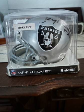 Jerry Rice Raiders Autograph Mini Helmet $100.00 CASH ONLY!!! C.O.A. #GV 46959