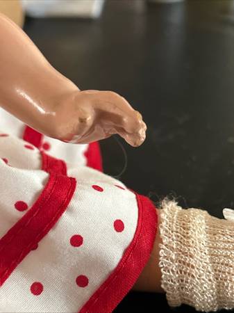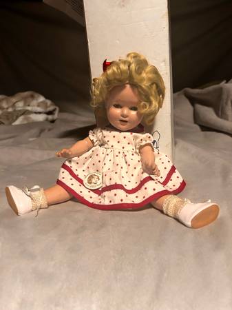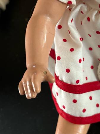 The Vintage 1930s Ideal Shirley Temple 17” Composition Doll is an original play doll featuring the iconic character Shirley Temple. Made in the United States in the 1930s, this blonde curly-haired doll is signed by the brand Ideal and comes with a dress and pin. Standing at 17 inches tall, this collectible doll is perfect for all occasions and is a charming addition to any doll collection, especially for fans of vintage dolls from the 1930s.