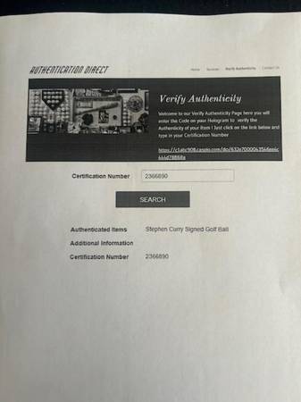 This golf ball has been autographed by none other than Steph Curry himself, the legendary player of the Golden State Warriors. The signature has been authenticated by Authentication Direct. This original and genuine autograph makes this golf ball a must-have for any true basketball fan or collector.