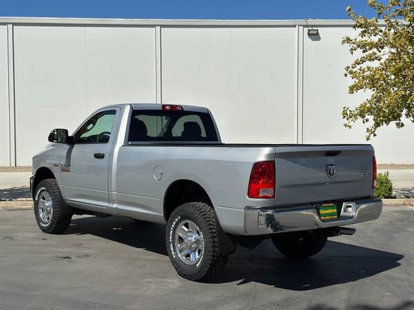 Get ready to conquer the road in this powerful 2016 RAM 2500 4X4 Regular Cab Long Bed with a HEMI 6.4L V8 engine that delivers an impressive 410hp and 429ft. lbs. of torque. This beast is equipped with the Chrome Appearance Group, Popular Equipment Group, and Tradesman Quick Order Packages 22A and 26A, ensuring you have all the essentials for a smooth ride. Notable optional features include SiriusXM Satellite Radio for endless entertainment, Fold-Away Power Trailer Tow Mirrors for convenience, an Anti-Spin Rear Differential for enhanced traction, a Cloth 40/20/40 Split Bench Seat for comfort, and a Trailer Brake Controller for added safety. The Bright Silver Metallic Clear Coat exterior paired with a Gray interior gives this truck a sleek and modern look that is sure to turn heads. With its excellent overall condition, you can trust that this RAM 2500 is ready to tackle any job or adventure you throw its way. Don't miss out on owning this impressive vehicle that offers both style and performance in one package.