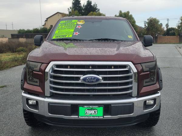 2015 *Ford*F-150*XLT -Stock 001326 Frank's Auto Sales 408-715-4876 - Call now for your best deal! ๐ ๐ Why Shop With Us? Located in Salinas, California, Frank's Auto Sales, INC. is a pre-owned, late model dealer that provides customers with a complete automotive experience at competitive prices. Frank's Auto Sales, INC. is dedicated to customer satisfaction and we have provided you with a map, as well as our address and phone number to help you find us easily. We are passionate about luxury cars and we intent on sharing that passion with you when you purchase your new car from us. Come by today and test drive the car of your choice. Year: 2015 Make: Ford Model: F-150 Trim: XLT Mileage: 135k miles Exterior Color: BURGANDY Interior Color: BLACK Engine: 3.5L 6 Cylinders Drive: rwd Transmission: Automatic VIN: 1FTEW1CG0FFA25215 Our 2015 Ford F-150 XLT SuperCrew 4X2 with the Equipment Group 302A in Bronze Fire Metallic, has been engineered with a military-grade aluminum-alloy body and a high-strength steel frame! Powered by a TurboCharged 3.5 Liter EcoBoost V6 generates 365hp connected to a 6 Speed Automatic transmission to offer all the muscle you need.This Rear Wheel Drive provides nearly 22mpg on the road and an aerodynamic design with chrome bumpers/grille, fog lights, aftermarket fender flares, running boards, and prominent custom wheels. XLT offers comfortable cloth seating, smart storage, power accessories, and Ford's Sync voice control smartphone integration system.Enjoy Bluetoothยฎ phone/audio connectivity and USB/auxiliary audio input jacks for the sound system. Ford safety features are ABS, stability/traction control, trailer sway control, front-seat side-impact airbags, and full-length side-curtain airbags.Our F-150 XLT is leading the way! Save this Page and Call for Availability.We Know You Will Enjoy Your Test Drive Towards Ownership!