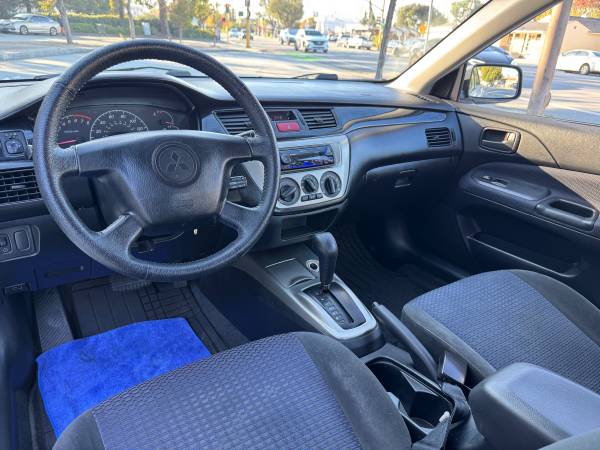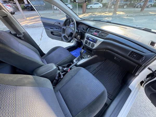 2004 MITSUBISHI LANCER ES 2.0L 4CYLINDERS WITH 199K MILES- AUTOMATIC- VERY WELL MAINTAINED- ONLY ONE OWNER! ALL MAJOR SERVICES INCLUDING TUNE UP, TIMING BELT AND ALIGNMENT HAS BEEN DONE- POWER MIRRORS,SIDE MIRROS- DOOR LOCKS- CRUISE CONTROL- ICE COLD A/C- RADIO AM/FM, RUNS AND DRIVES GREAT! ASKING $3,750 YOU CAN REACH ME @ 4O8-6O3-9498 SASAN