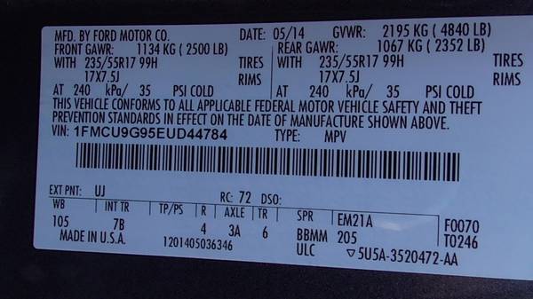 2014 Ford Escape SE AWD Exterior Color: Gray Interior Color: Gray VIN: 1FMCU9G95EUD44784 Mileage: 139,171 MPG: 23 City / 32 Highway Engine: EcoBoost 1.6L Turbo I4 178hp 184ft. lbs. Fuel: Gasoline...