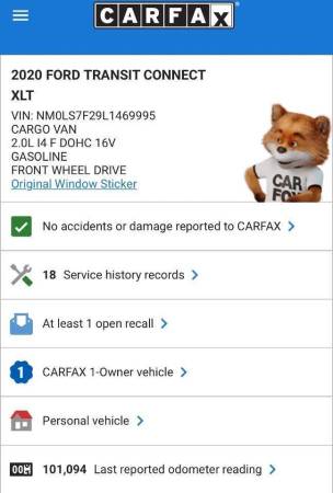 <b id="CarYearMakeModel">2020 Ford Transit Connect XLT Cargo Van</b>