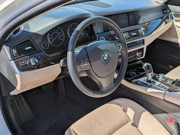 * Sun/Moonroof * Keyless Start * Alpine White * Veneto Beige; Leatherette Seat TrimThis vehicle includes a Money-Back Guarantee* and passed our precise inspection process. Best of all the price you see is the price you pay. No haggling. No back and forth. No pressure. And this price is so good it is guaranteed. *Money-Back Guarantee is valid for 5 days or 250 miles, whichever comes first. Subject to certain terms and conditions. See store for details. Some restrictions apply.2013BMW5 Series This BMW 5 Series 528i's level of quality is not meant for just anyone. It's meant for the person who strives for a classy, comfortable, and luxurious car. This 2013 BMW 5 Series has great acceleration and wonderful styling without sacrificing exceptional fuel economy. A BMW with as few miles as this one is a rare find. This 5 Series 528i was gently driven and it shows. More information about the 2013 BMW 5 Series: The BMW 5-Series stands out as a traditional luxury sport sedan that not only offers strong, uncompromised performance but also some leading-edge safety and connectivity technology. And increasingly so, the 5-Series has an advantage over most of its rivals in that it offers more fuel-saving measures than most other sport sedans--with items such as Auto Start/Stop, turbocharging, direct injection and a special Eco Pro driving mode combining to provide significant gains in gas mileage. Otherwise, the 5-Series sedans offer more comfortable, refined cabins than some other sport sedans, and the 5-Series Gran Turismo body style is a good pick for those who want a little more cargo flexibility. This model sets itself apart with leading-edge tech options, active-safety features, Eco-conscious performance, responsive handling, and refined, luxurious interior