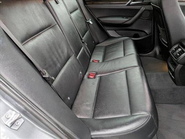 The following items have been reconditioned on this vehicle: all new tires! * Black; Nevada Leather Upholstery * Space Gray Metallic * Leather Seats * Rear SpoilerThis vehicle includes a Money-Back Guarantee* and passed our precise inspection process. Best of all the price you see is the price you pay. No haggling. No back and forth. No pressure. And this price is so good it is guaranteed.This 2015 BMW X3 xDrive28i is proudly offered by BMW of Fremont This BMW includes: NAVIGATION SYSTEM Navigation System Telematics Hard Disk Drive Media Storage MP3 Capability PARK DISTANCE CONTROL Automatic Parking Rear Parking Aid DRIVER ASSISTANCE PACKAGE Rear Parking Aid Back-Up Camera POWER FRONT BUCKET SEATS W/DRIVER SEAT MEMORY Mirror Memory Seat Memory Power Passenger Seat Power Driver Seat Bucket Seats HEATED FRONT SEATS Heated Front Seat(s) SPACE GRAY METALLIC SATIN ALUMINUM ROOF RAILS BLACK, NEVADA LEATHER UPHOLSTERY Leather Seats FINELINE ANTHRACITE WOOD TRIM PREMIUM PACKAGE HD Radio Generic Sun/Moonroof Satellite Radio Power Door Locks Keyless Entry Passenger Adjustable Lumbar Sun/Moonroof Driver Adjustable Lumbar Dual Moonroof PANORAMIC MOONROOF Generic Sun/Moonroof Sun/Moonroof Dual Moonroof *Note - For third party subscriptions or services, please contact the dealer for more information.* Gone are the days of SUVs being the size of a tank and handling like one. This BMW X3 is a perfect example of how SUVs have evolved into vehicles that are as refined as they are rugged. You deserve a vehicle designed for higher expectations. This BMW X3 xDrive28i delivers with a luxurious, well-appointed interior and world-class engineering. This vehicle has an added performance bonus: AWD. It improves handling on those winding back roads, and gives you added safety and control when driving through wet and snow weather conditions. You can tell this 2015 BMW X3 has been pampered by the fact that it has less than 94,968mi and appears with a showroom shine. Time is money, and thanks to the navigation system on this BMW X3, you'll be spending a whole lot less time getting to your destination. Added comfort with contemporary style is the leather interior to heighten the quality and craftsmanship for the BMW X3 xDrive28i. More information about the 2015 BMW X3: The X3 is one of the quickest and most nimble-handling of the compact luxury-brand crossovers; yet it's also one of the most fuel-efficient in 4-cylinder xDrive28i form. The sensible, yet stylish cabin strikes a great balance between plush comfort and practical family sensibilities, and it has one of the more comfortable back seats in its class; while the number of useful high-tech features and driver aids is impressive. Interesting features of this model are Quick and nimble, very fuel-efficient compared to other crossovers, comfortable, well-appointed cabin, and long list of technology features and upgrades*Money-Back Guarantee is valid for 5 days or 250 miles, whichever comes first. Subject to certain terms and conditions. See store for details. Some restrictions apply.