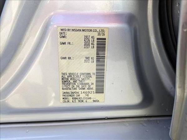 * Leather Seats * [L92] Floor Mats Plus Trunk Mat (5-Piece Carpeted) * Keyless Start * [C03] 50 State Emissions * Brilliant Silver * Charcoal; Leather Appointed Seat TrimThis vehicle includes a Money-Back Guarantee* and passed our precise inspection process. Best of all the price you see is the price you pay. No haggling. No back and forth. No pressure. And this price is so good it is guaranteed. *Money-Back Guarantee is valid for 5 days or 250 miles, whichever comes first. Subject to certain terms and conditions. See store for details. Some restrictions apply.AutoNation USA Centennial is honored to present a wonderful example of pure vehicle design... this 2017 Nissan Altima 2.5 SL only has 73,329mi on it and could potentially be the vehicle of your dreams! This Nissan includes: BRILLIANT SILVER*Note - For third party subscriptions or services, please contact the dealer for more information.*This vehicle was engineered to be both economically and environmentally friendly with exceptional fuel efficiency. Exceptional in every sense of the word, this incredibly low mileage vehicle is one of a kind.The look is unmistakably Nissan, the smooth contours and cutting-edge technology of this Nissan Altima 2.5 SL will definitely turn heads. This vehicle includes a Money-Back Guarantee* and has passed our precise inspection process. “What does that inspection include?” – Our “Worry Free Folder” is in each vehicle and includes the complete inspection, along with the work that was completed to bring the vehicle up to AutoNation standards. A copy of the CarFax has also been included for you. Best of all the price you see is the price you pay. No haggling. No back and forth. No pressure. *Money-Back Guarantee is valid for 5 days or 250 miles, whichever comes first. Subject to certain terms and conditions. See store for details. Some restrictions apply.