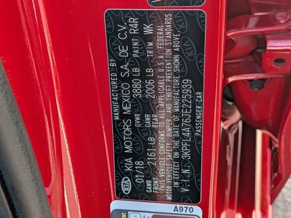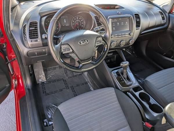 The following items have been reconditioned on this vehicle: all new tires! * Carpeted Floor Mats * Rear Spoiler * Black; Knit & Woven Cloth Seat Trim * Currant RedThis vehicle includes a Money-Back Guarantee* and passed our precise inspection process. Best of all the price you see is the price you pay. No haggling. No back and forth. No pressure. And this price is so good it is guaranteed. *Money-Back Guarantee is valid for 5 days or 250 miles, whichever comes first. Subject to certain terms and conditions. See store for details. Some restrictions apply.AutoNation Acura Stevens Creek is excited to offer this 2018 Kia Forte S. You could spend more on fuel each month than on your vehicle payments, so why not consider one with exceptional fuel economy like this 2018 Kia Forte. Just what you've been looking for. With quality in mind, this vehicle is the perfect addition to take home. Beautiful color combination with Currant Red exterior over Black interior making this the one to own! Surprising quality accompanied by a high level of performance...this Currant Red on Black Kia Forte S could end up being the perfect match for you.