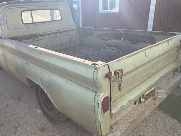 Clean little 1965 GMC truck. Lots of coolness in this green beast. Factory V6 305 big engine. Has air conditioning, power brakes, Manual transmission, 8 lug and overall good condition. Drove it to that spot it’s in over 5 years ago and never had time to work on it. I can throw a battery in it to make it run. Priced for $7995 and currently lost paperwork, so being sold on a bill of sale.