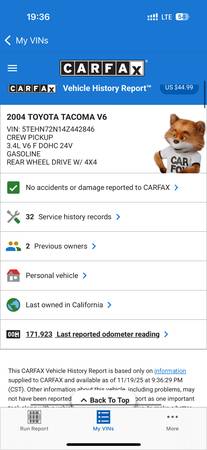 2004 TOYOTA TACOMA V6. 4X4. Run perfect. Excellent condition. It has 175k mile. Smog done recently. No mechanical issue. Interior and exterior is clean. Clean title. NO Rust. All times California...