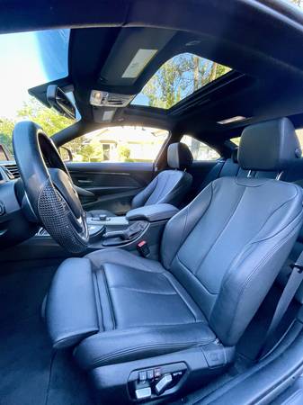 BMW 430i Coupe, two-door Sport edition with only 65k miles and a CLEAN TITLE! Hard to find these in this condition. All original throughout, no modes. Driven and maintained professionally. This has a 2.0L turbocharged engine with 250 horsepower. 8-speed automatic transmission and rear-wheel drive. It has leather seats, a sunroof, back up camera, premium sound system and BMW’s iDrive infotainment system, and dual-zone climate control. Meticulously maintained. 2017-2020 pretty much have the same exact design for the exterior.
