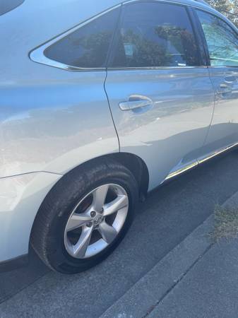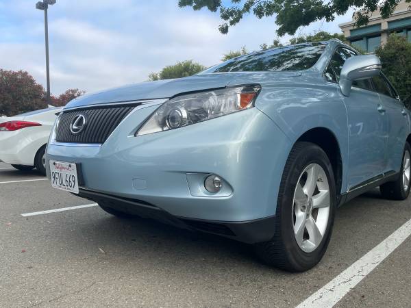 Excellent condition, light blue, Lexus RX 350. 180k miles and recently replaced rear left door. Kelly Blue Book link: https://www.kbb.com/lexus/rx/2010/rx-350-sport-utility-4d/?vehicleid=264319&mileage=180000&offeroptions=true&modalview=false&intent=trade-in-sell&pricetype=private-party&condition=excellent&iscombined=true&options=3067722%7Ctrue%7C3067723%7Ctrue%7C3067721%7Ctrue%7C6484185%7Ctrue&extcolor=blue&skippedleadform=true&subintent=sell&colorOptionId=6484185&entry=defymmt
