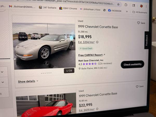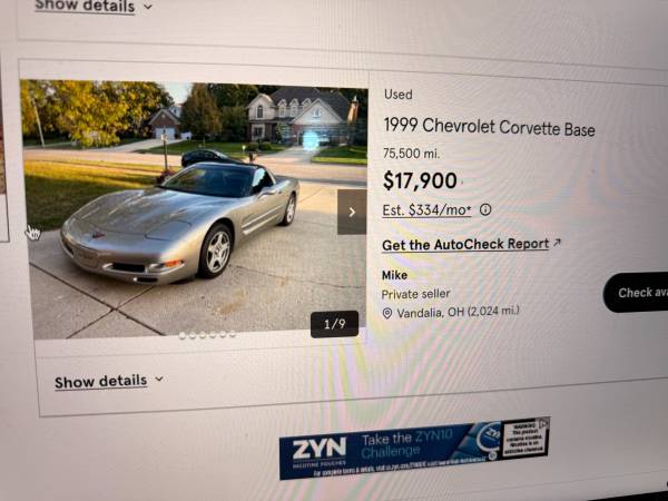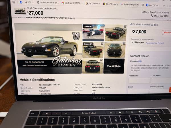 I have photos of my car and the valuation, so you can see the worth of my classic 1999 Chevrolet Corvette.