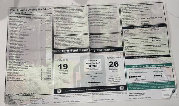 2. Fully loaded. See details in window stickers. e.g. M sports package, Premium package, Convenience package, Technology package. Front/back LED light, head up display, heated seat/steering wheel, navigation, back/top view camera, front/back sensor, leather seats, trunk separator, powered tow hatch, back window build in shade.